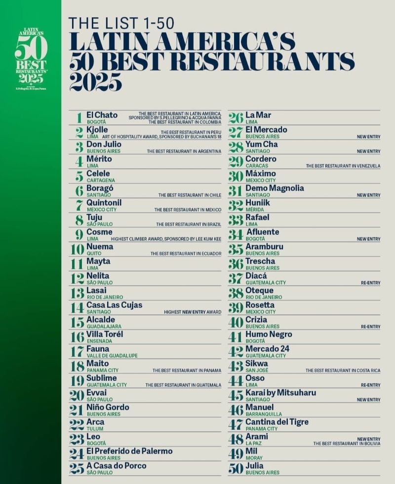 Panamá celebra con orgullo la inclusión de seis restaurantes del patio en la prestigiosa lista de Latin America’s 50 Best Restaurants 2025, un reconocimiento internacional que destaca la excelencia gastronómica, la diversidad de sabores y la identidad culinaria del país.